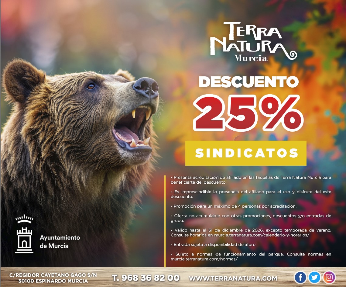 Oferta de Invierno. Compra tus entradas con un 25% de descuento presentando tu Certificado de afiliación en las taquillas de Terra Natura Murcia para beneficiarte del descuento.