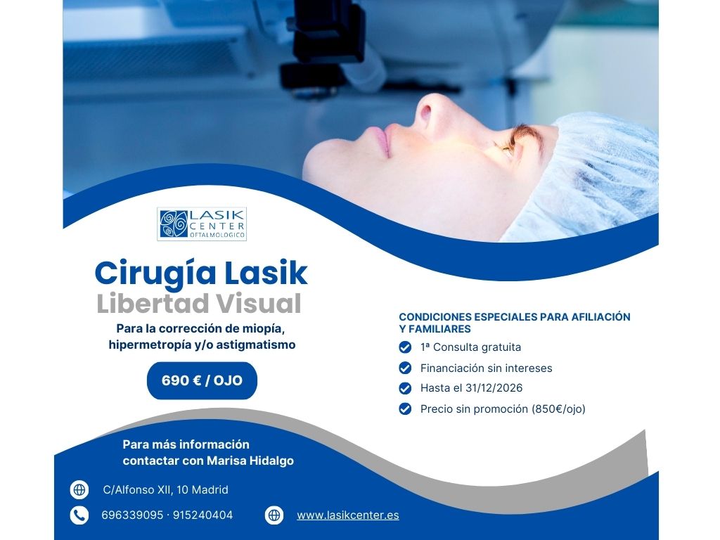 - Cirugía Lasik personalizada para miopía, hipermetropía y/o astigmatismo 690 € por ojo (precio no afiliados 850 € por ojo).