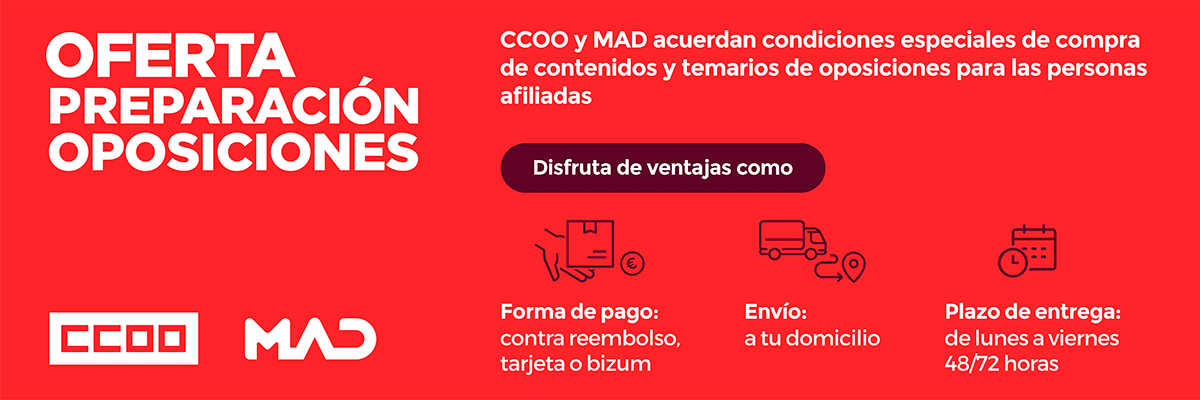 Eticop ofrece descuentos de hasta el 55% en cursos de preparación para oposiciones en Renfe, ADIF, Policía Municipal, Ayuntamientos y Auxiliares Administrativos. Descuento para personas afiliadas de CCOO en formación no reglada.