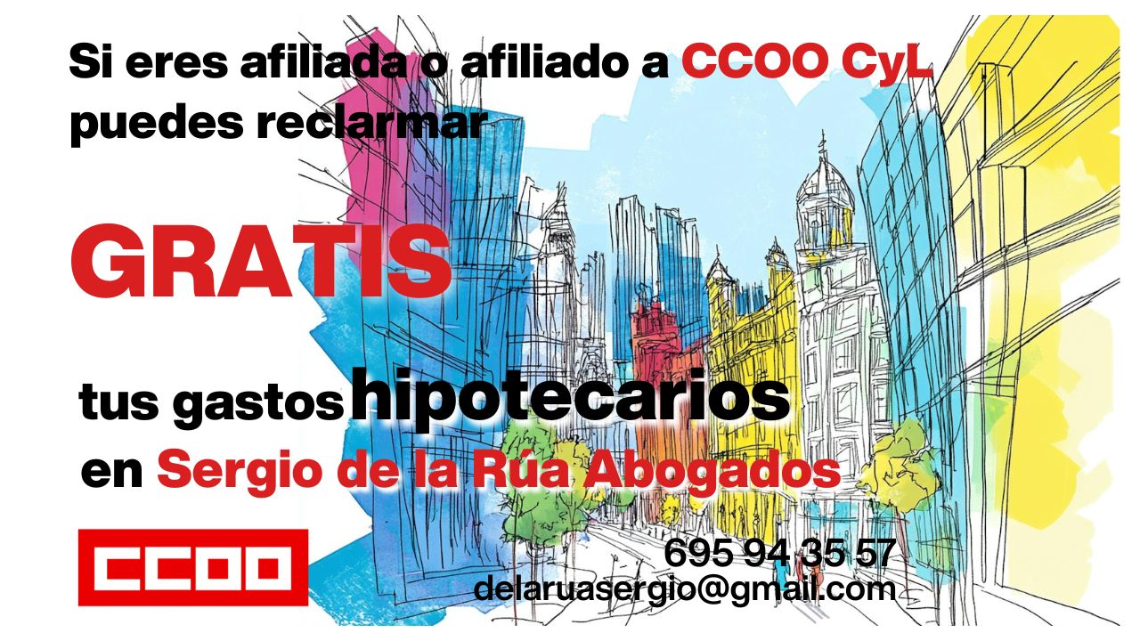 Todas las personas afiliadas a CCOO y familiares podrán reclamar, de forma gratuita, sus gastos hipotecarios (facturas de Notaría, Registro de la Propiedad, Gestoría y Tasación), abonados indebidamente al formalizar su préstamo hipotecario.